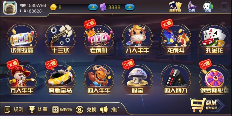 扑克场:十三水、八人牛牛、炸金花、四人牛牛、四人牌九、癞子斗地主、斗地主