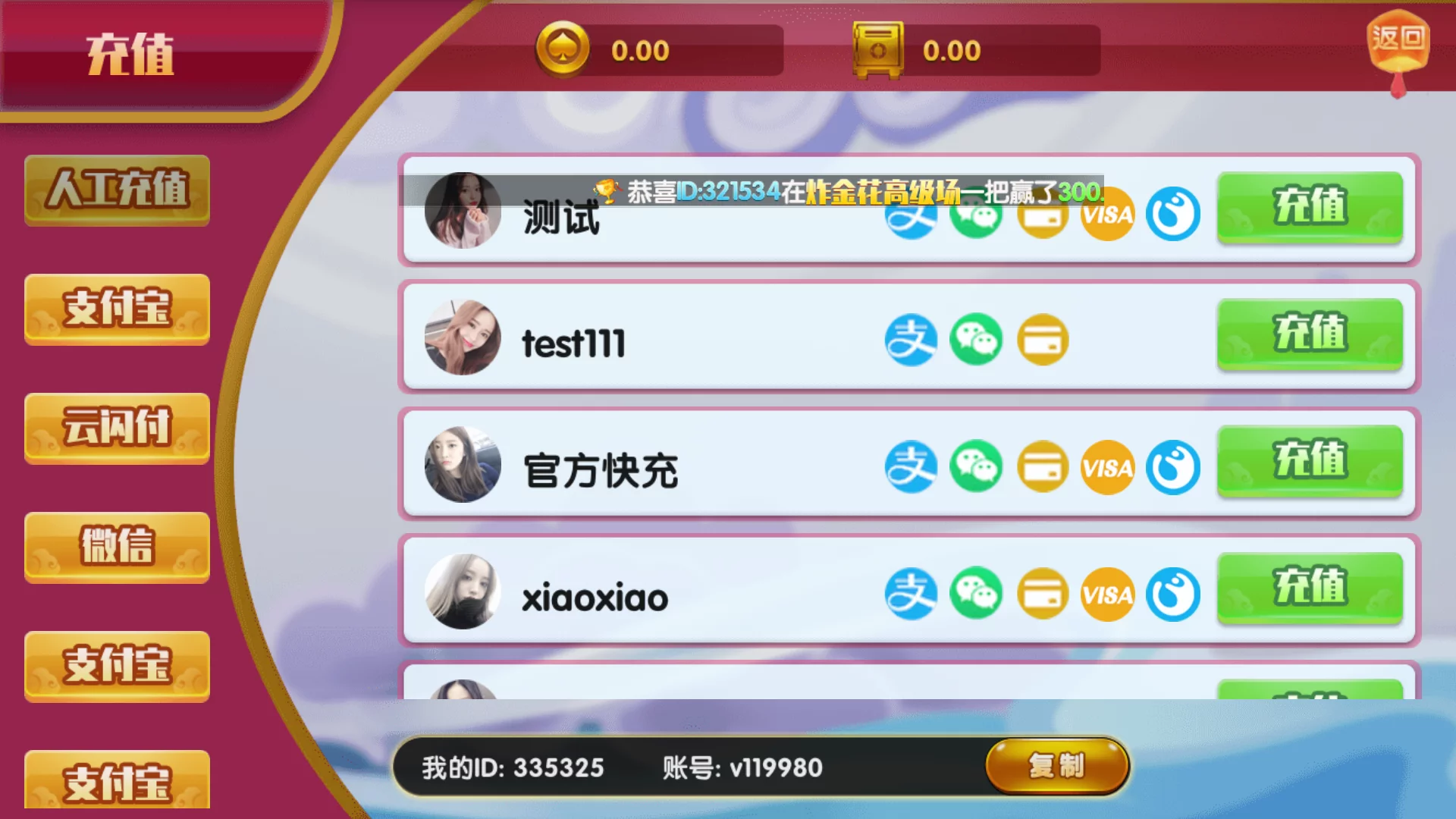 详情介绍 永利二开的风云游戏 界面全部是动态 全部游戏正常 非常适合运营 搭建难度也不算大 喜欢的老板自己上分 老规矩下单自动发货 资源下载下载价格200 积分VIP免费升级VIP立即购买此资源购买后1天内可下载。虚拟资源具有可复制性,购买后不支持任何理由退款,请谨慎下单! 请勿商业运营,违法使用和传播!仅供研究学习使用! 原文链接:https://ym.91zyw.com/2347.html,转载请注明出处。 0